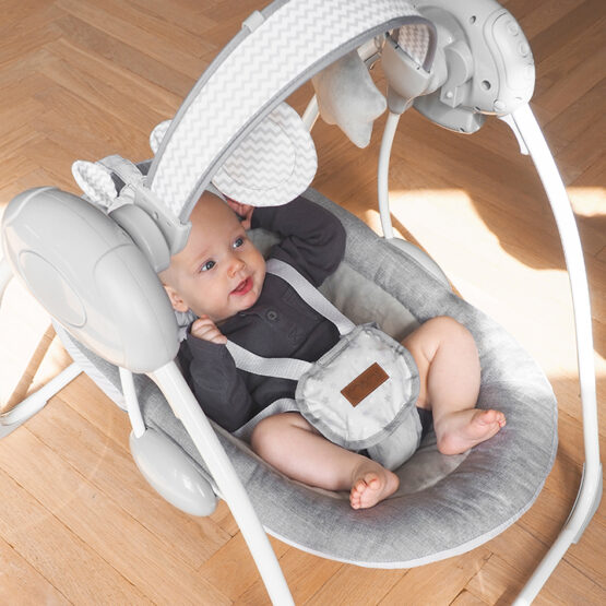 | Качалка MoMi LISS чрезвычайно удобна. Он имеет просторное сиденье и дополнительную подушку для головы плюшевого мишки. Он имеет устойчивую структуру, что делает его полностью безопасным для ребенка. | MoMi LISS имеет функцию автоматического поворота с 5 уровнями скорости. Качалка питается от батареек или адаптера. | Рокер легкий, его легко переносить и транспортировать. В сложенном виде он имеет компактные размеры, что упрощает его хранение. |