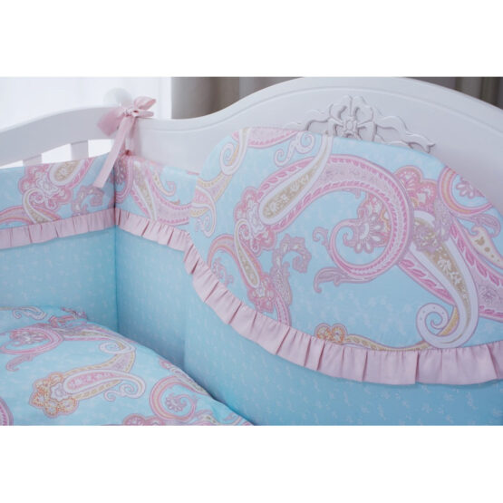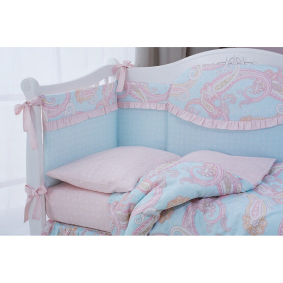 Эталон нежности, эксклюзивный комплект «Шантель» наполнит ваш интерьер атмосферой французской элегантности — благодаря классическом узору, сочетанию легких, почти невесомых оттенков и изящным деталям, созданным вручную в нашей творческой мастерской. Светлые оттенки подчеркивают оригинальный рисунок, который будет радовать вас даже после многочисленных стирок, а нежность элитного сатина подарит новорожденному удовольствие от каждого прикосновения и спокойный глубокий сон.