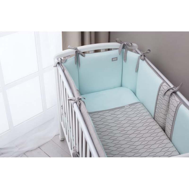 Каждая расцветка модели Elfetto обладает своим характером, становясь изюминкой детской спальни. Современная мятная или воздушная молочная с цветочным принтом— что бы вы ни выбрали, практичность комплекта вас обязательно порадует. Одна из его особенностей — универсальный полуборт, который частично закрывает кроватку и подразумевает различные варианты расположения.