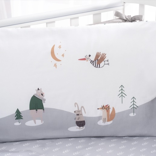 Креативный дизайн с необычными лесными персонажами станет современным дополнением любой детской комнаты. Forest Baby — тот самый комплект, с которым не захочется расставаться, его принт будет интересен даже подросшим деткам.