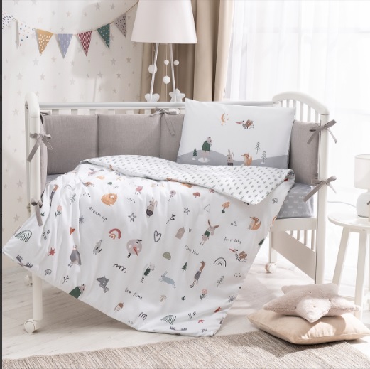 Комплект Forest Baby нежный и приятный на ощупь благодаря премиальному сатину. Качество ткани и специальный способ нанесения узора обеспечит новый вид даже после многократных стирок. Сатин долго остается мягким и гладким. Поэтому так уютно чувствуют себя малыши, закутавшись в это постельное белье.