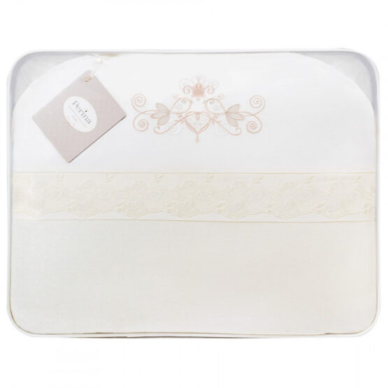 Комплект постельного белья «Версаль» создан для новорожденных принцев и принцесс. Истинно французская, изысканная роскошь сатин-жаккарда (невероятно мягкой ткани с рельефным узором из высококачественного хлопка и бамбукового волокна) – в сочетании с утонченными кружевами, изящной вышивкой, цветом шампань станет подлинным украшением детской комнаты и создаст особый уют и комфорт для малыша. Бампер из шести частей дает возможность разнообразных вариантов использования.