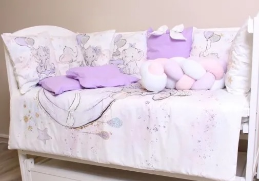 Комплект в кроватку 8 предметов PernaMea Cosiță Elefant Lila