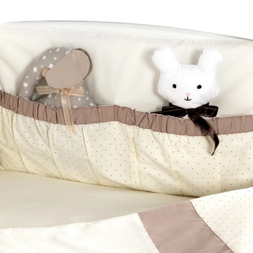 Для дополнительного удобства бампер сделан из отдельных частей со съемным чехлом. Теперь вы можете стирать только внешнюю часть бампера, не затрагивая наполнитель. А внутри бампера — экологически чистый, гипоаллергенный и легкий материал. Он прекрасно сохраняет форму, не слеживается, даже когда малыш начинает активно передвигаться в кроватке.