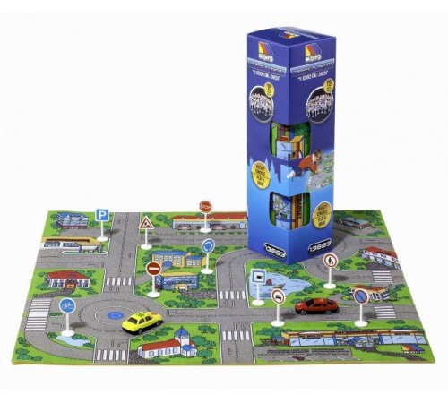— В комплекте: коврик, 12 дорожных знака, 2 машинки;