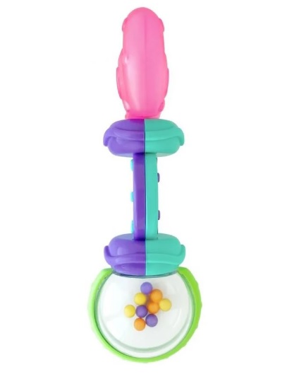 Шарики внутри игрушки будут шуметь и привлекать внимание ребенка.