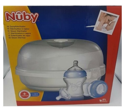 Стерилизация очень важна в течение первых месяцев. Все молоко способствует развитию бактерий, поэтому важно, чтобы вы вымыли, очищали и стерилизовали все ваше оборудование для кормления, чтобы избежать инфекций и болезней. Этот стерилизатор Nûby Natural Touch прост в использовании. Преднозначен для использования в микроволновой печи.