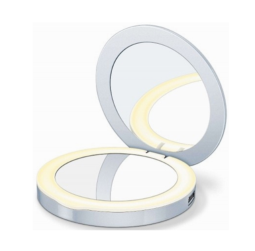 и зеркала с 3-кратным увеличением. Косметическое зеркало имеет дополнительный встроенный аккумулятор. Встроенный аккумулятор представляет собой мобильный заряжаемый источник тока, от которого Вы сможете заряжать смартфон или другое заряжаемое электронное устройство через разъем USB. Компактная конструкция прибора позволяет брать его с собой в поездку.