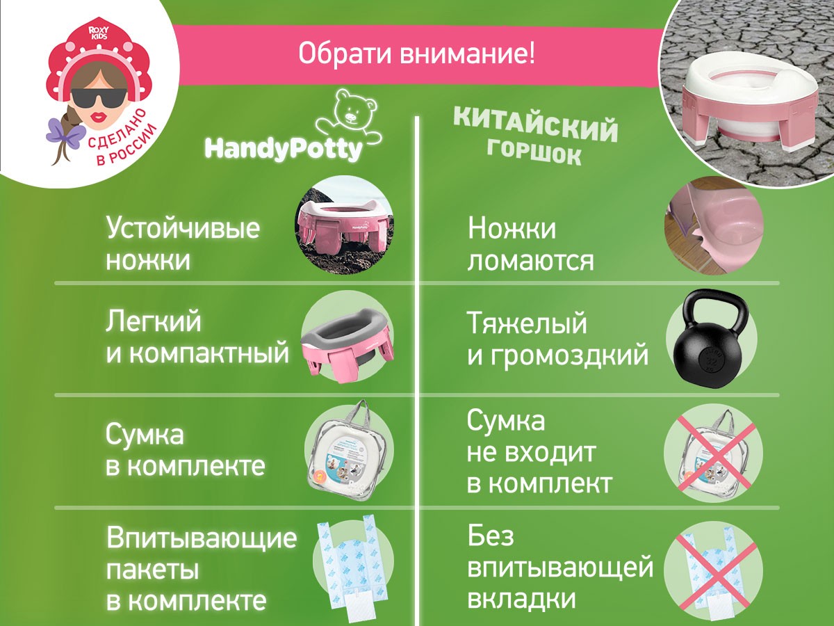 Дорожный горшок для детей HandyPotty поможет обеспечить дополнительный комфорт в путешествиях с маленькими детьми.