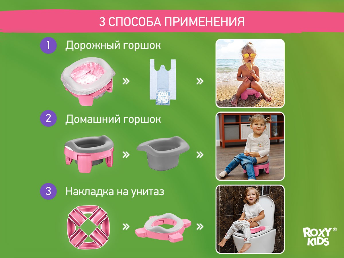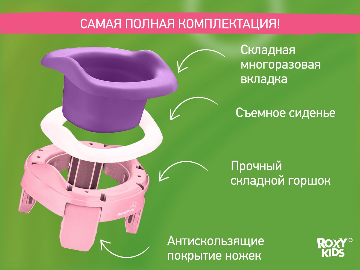 Дорожный горшок HandyPotty Roxy Kids 3×1, Розовый+Фиолетовый (HP-255E)