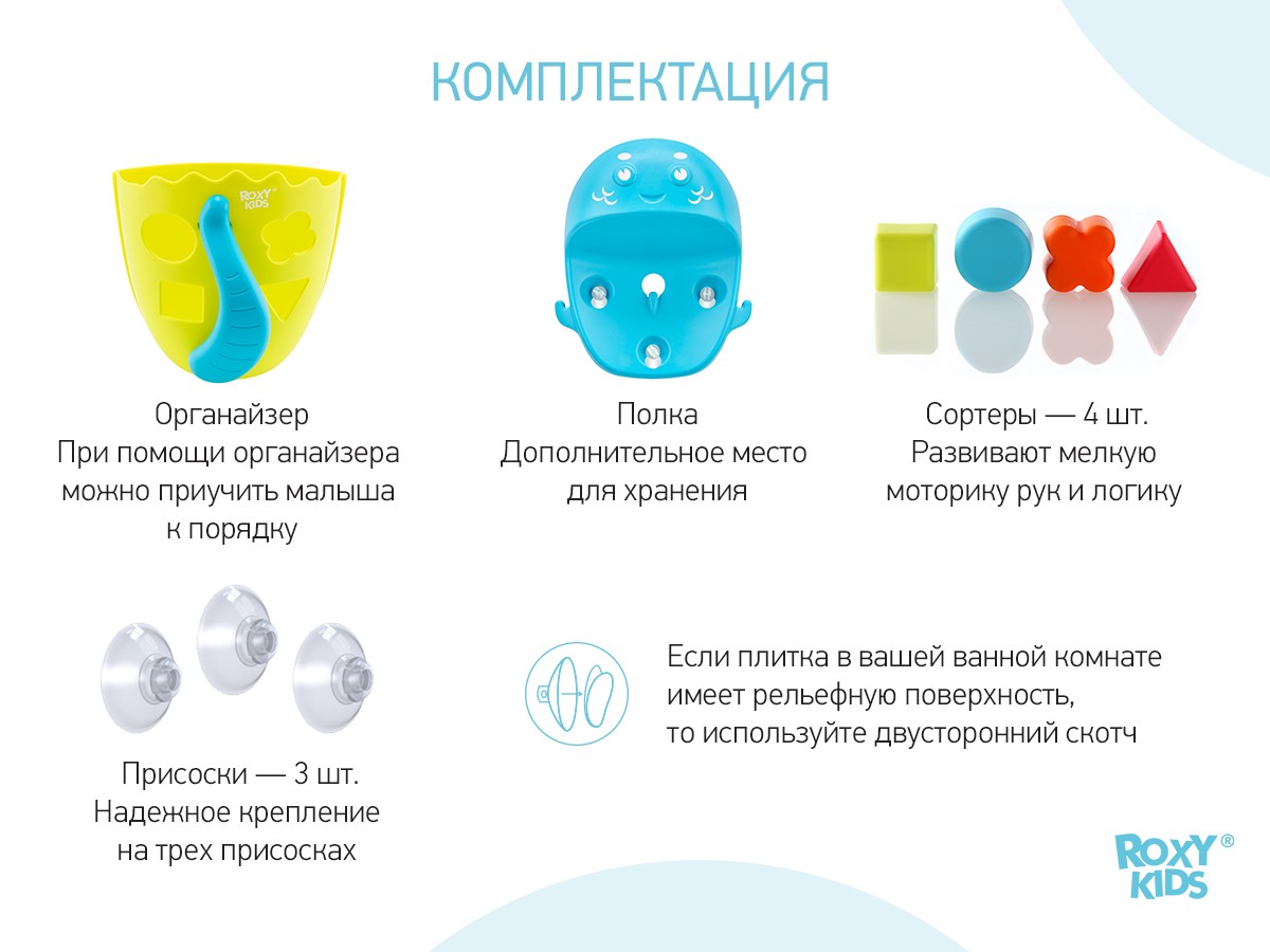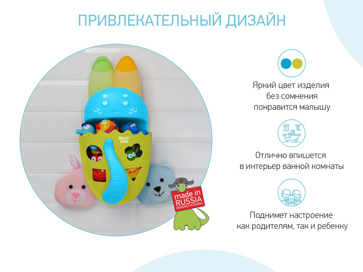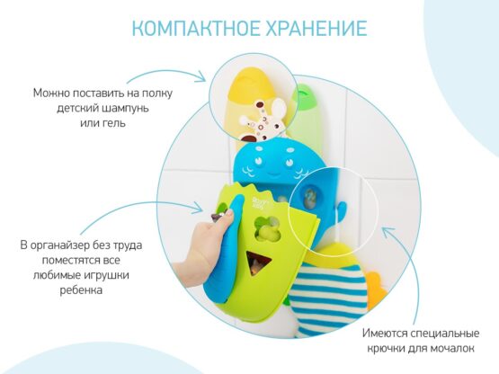 Органайзер с полкой для хранения игрушек и банных принадлежностей DINO от ROXY-KIDS является улучшенной версией стандартного органайзера.
