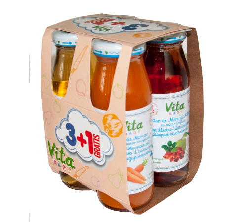 Vita Baby предлагает широкий выбор натуральных детских сокови от 4 месяцев с различными фруктами и овощами.