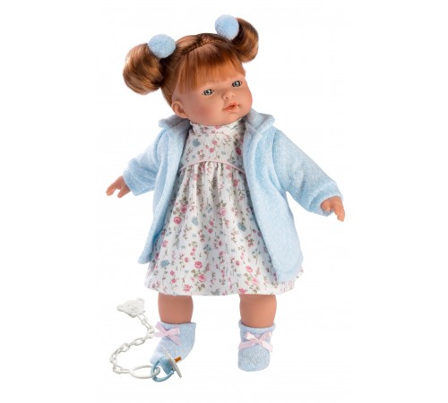 Интерактивная кукла Лея — была изготовлена вручную, благодаря испанской марке Llorens. Это отличная игрушка для детей всех возрастов. Лея одета в белое платье с цветочным принтом, пальто голубого цвета и голубые носочки с бумбонами. Вся одежда пошита из высококачественных тканей. Круглое лицо, крошечные уши, нос и рот делают куклу похожей на настоящего ребенка. Кукла имеет тканевый животик, наполненный мягкой подкладкой, благодаря чему ребенок обладает высоким комфортом игры. Ее любимая соска очень важна для нее, поэтому, когда мы её забираем, она начинает плакать и звать маму, папу. Кукла упакована в декоративную картонную коробку.