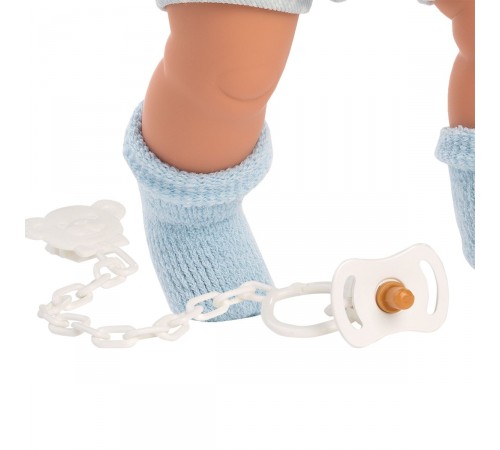 Интерактивная кукла Саша работа испанского бренда Llorens, которая прилагает все усилия, чтобы сделать свои игрушки уникальными. Эта кукла – воплощение мечты каждой маленькой девочки. Очаровательный мальчик Саша одет в голубой комбинезон со звёздами, белый жакет с меховым капюшоном, голубой шарф с помпонами, шапочку и голубые носочки. У куклы красивое лицо, синие глаза и светлые волосы. Животик куклы наполнен мягкой набивкой, что делает его идеальным для объятий. Кукла имеет соску, прикрепленную к ленте, которая выполняет важную функцию. Если забрать у куклы – пустышку, она заплачет и позовёт свою маму и папу, как настоящий ребенок. Кукла упакована в декоративную картонную коробку. Мы любим испанских кукол Llorens!