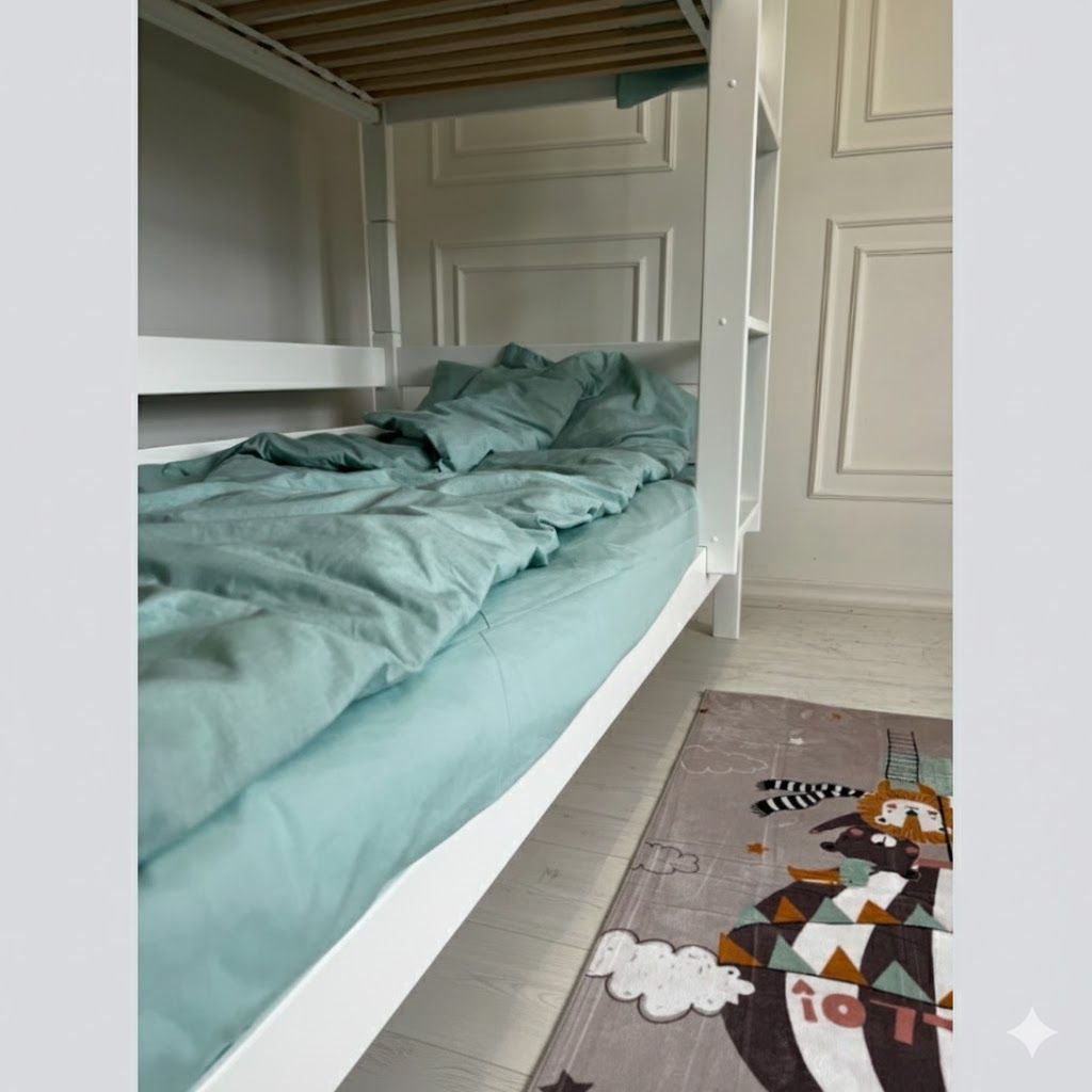 Удобная деревянная кровать имеет привлекательный дизайн и надежную конструкцию. Модель изготовлена из массива дерева бук, тщательно отшлифованного и покрытого экологическим льняным маслом.Кровать спроектирована по классической схеме на мебельных винтах. Предусмотрена удобная лестница на второй уровень из четырех ступенек. Второй этаж оснащен предохранителем для безопасности ребенка.