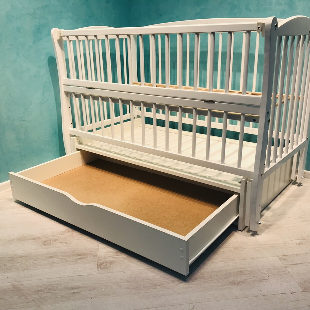 Кроватка для новорожденного с маятниковым механизмом качания. Практичная детская кровать изготовлена из качественных и безопасных материалов. Присутствует откидной бортик, что обеспечивает легкий доступ к спальному месту ребенка. А ортопедическими ламелями обеспечат правильное формирования позвоночника малыша.