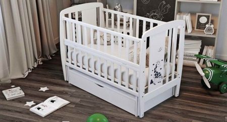 Детская кроватка изготовлена из массива карпатского бука. Передний бортик опускается. Это позволяет маме с легкостью контролировать сон малыша. Защелки для крепления верхней части бортика к кроватке сделаны из плотного пластика и очень хорошо крепятся. Дно кроватки выполнено из деревянных ламелей. Они обеспечивают прочность и упругость. Матрас хорошо проветривается и выполняет ортопедические функции.