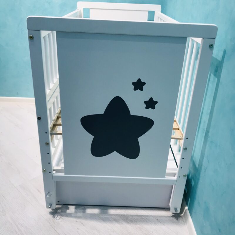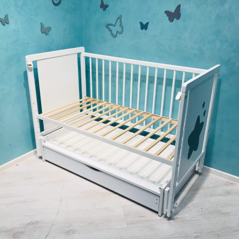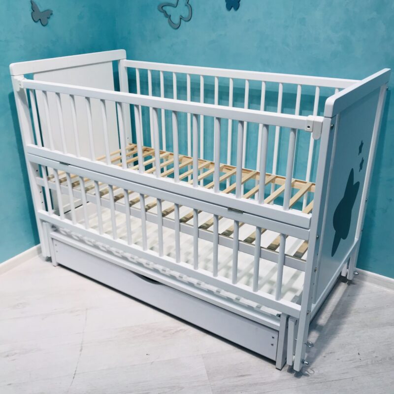 Детская кроватка Duboc Lux Звезда с ящиком, цвет белый. Сделана из натурального дерева с маятниковым механизмом качания.