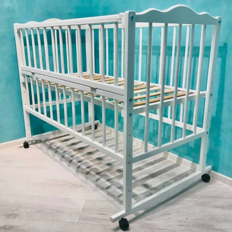 — Дно кроватки изготавливается из ортопедических ламелей или деревянных планок- что обеспечивает достаточную вентиляцию матрасика и постельного белья