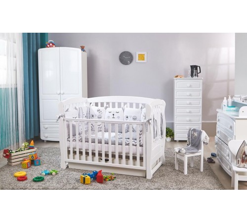 — Все детали кроватки имеют безопасные округлые формы и полированные поверхности;