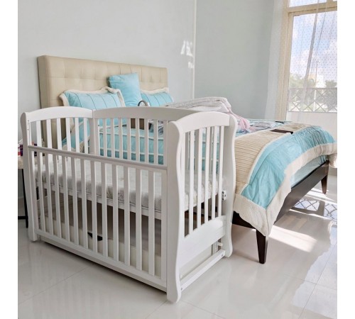 — Дно кроватки изготовлено из ортопедических ламелей, которые обеспечивают достаточную вентиляцию матрасика и постельного белья;