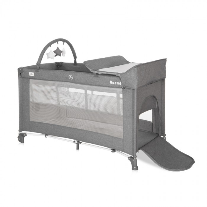 У этой модели 2 уровня для сна и игр, а так же пеленальная доска и дуга с игрушками в комплекте.