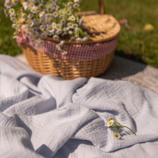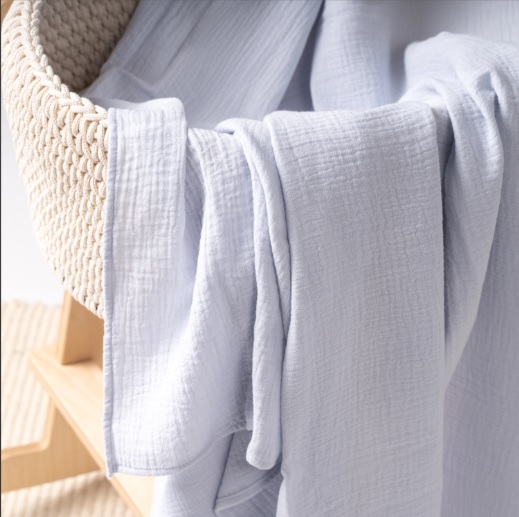 Ткань — премиальный жатый муслин высокого качества. Такая ткань хорошо пропускает воздух, прекрасно впитывает воду и быстро сохнет.