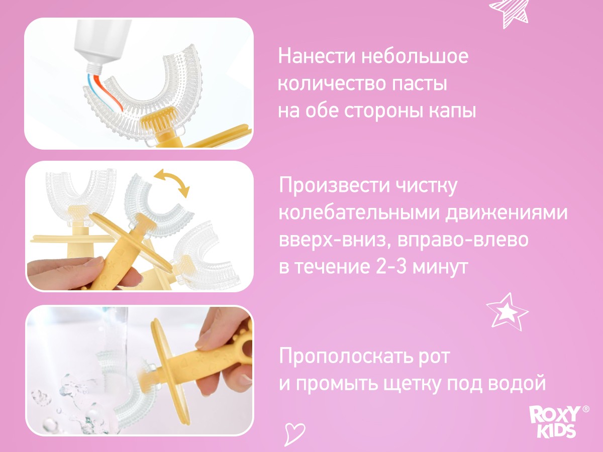 U-образная щетка в форме капы покрывает 99% зубов, а мягкие силиконовые ворсинки бережно массируют десны, улучшают кровообращение и удаляют зубной налет.