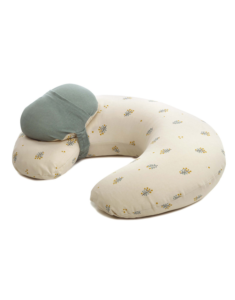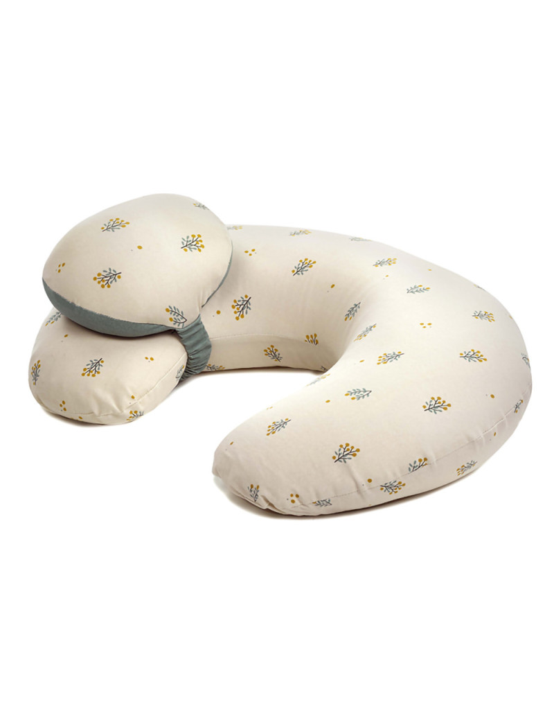Он имеет эргономичную форму для комфортного грудного вскармливания, а его наполнитель состоит из шариков, благодаря чему он лучше адаптируется к каждому положению.