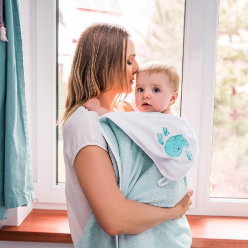 БАМБУКОВОЕ полотенце с капюшоном-уголком незаменимо с самого первого купания. Изготовлено из высококачественного нежного бамбука с примесью пушистого хлопка, отлично впитывает воду. Полотенце превосходно впитывает влагу и обеспечивает эффективную защиту чувствительной кожи ребенка от воздействия внешних температур. Благодаря своим терморегулирующим свойствам, оно дает ощущение прохлады летом и тепла зимой. Бамбуковое полотенце отвечает ожиданиям самых требовательных родителей, желающих обеспечить ребенку максимальный комфорт во время купания. Это очень хороший выбор для детей с проблемами с кожей, так как бамбуковое волокно обладает гипоаллергенными свойствами. Для комфорта ребенка капюшон внутри прошит дополнительным слоем ткани. Кроме того, полотенце имеет пришитую аппликацию с животными. Оно упаковано в прозрачный пакет с застежкой на липучки.