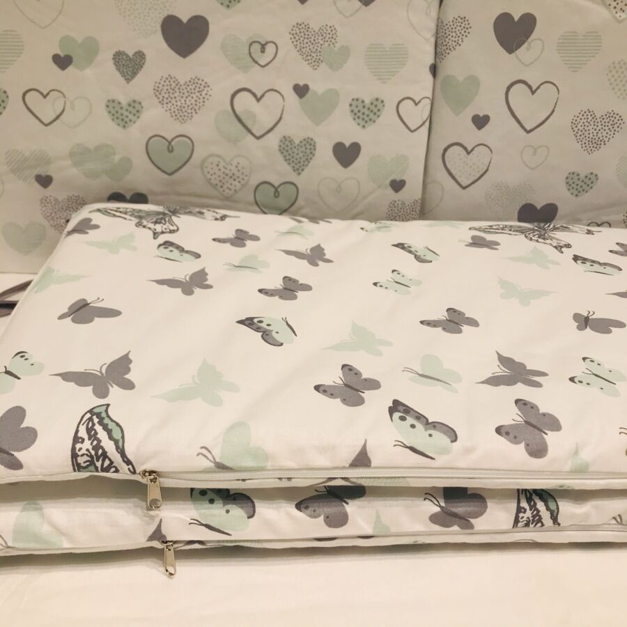Съёмные чехлы бортиков на молнии и выполнены из 100% турецкого хлопка