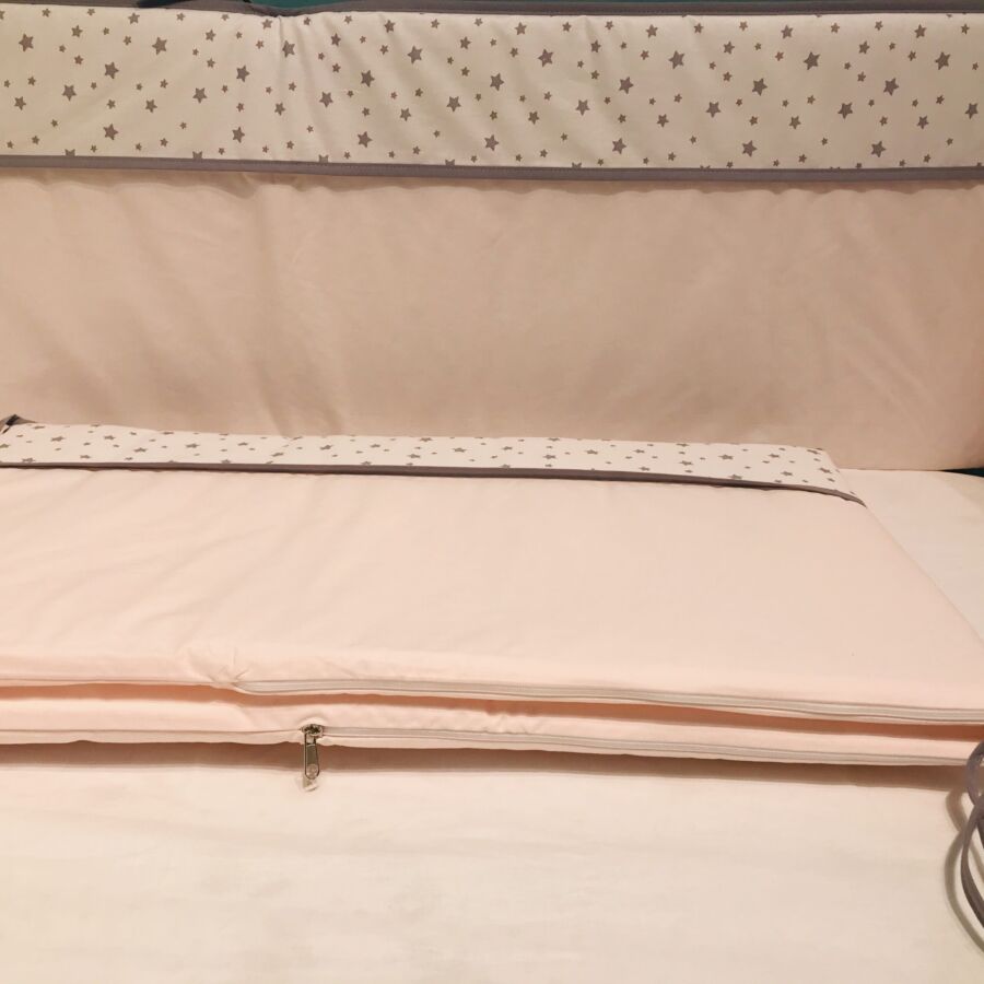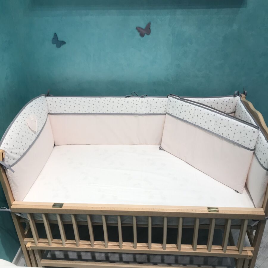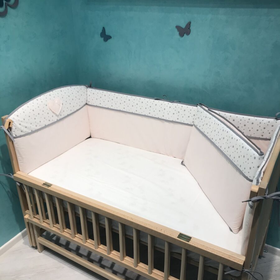 Съёмные чехлы бортиков на молнии и выполнены из 100% турецкого хлопка