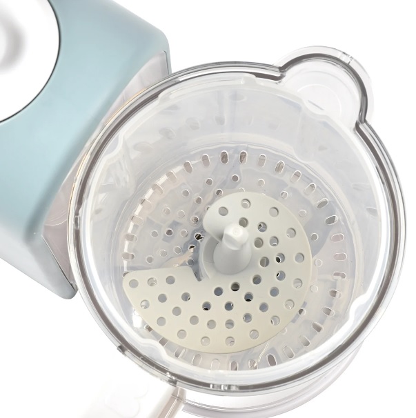 Еще одно преимущество — сбор жидкости, образующейся при приготовлении на пару, вместе с содержащимися в ней витаминами и питательными веществами. После обработки паром ингредиенты и часть полученной жидкости гомогенизируются в чаше, достигая желаемой консистенции и текстуры в зависимости от возраста и пищевых привычек ребенка.