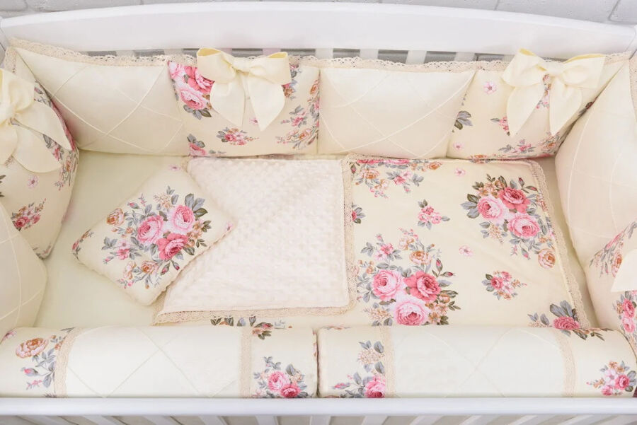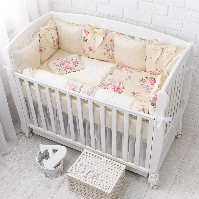 Бортики-подушки считаются важным элементом в комплекте, поскольку служат в качестве защиты младенца от всевозможных ударов об кроватку.