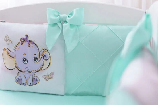 Бортики складываются из 4-х отдельных частей, которые имеют съёмные чехлы на замке. Ещё один большой плюс данной защиты — двухсторонний пошив. Поменяв стороны, Вы получаете новый рисунок и расцветку. Внутри бамперов есть подушечки с силиконизированным волокном. Защита оберегает малыша от всевозможных травм и ударов об кроватку.