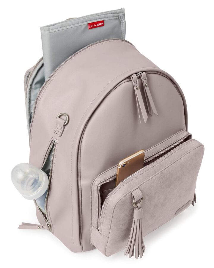 Рюкзак Greenwich от компании Skip Hop изготовлен из качественной эко-кожи . Рюкзак очень стильный и функциональный, он имеет несколько карманов для максимальной организации мамы. Как и все рюкзаки для мам от компании Skip Hop, в комплект входит коврик для пеленания малыша.