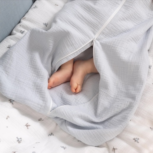 Материал спальника — высококачественный двухслойный жатый муслин, 100% эко хлопок. Он легкий, воздушный и невероятно приятный на ощупь. Муслин прекрасно впитывает влагу, быстро сохнет и сохраняет свою мягкость и цвет даже после множества стирок. Подкладка спальника выполнена так же из двухслойного муслина. Все швы спрятаны внутрь, что делает использование спальника более комфортным и безопасным.