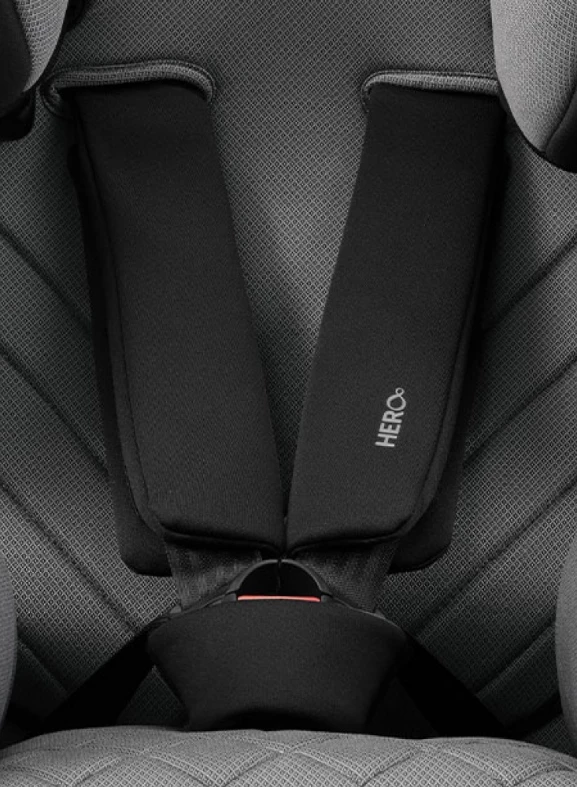 Ребенок фиксируется пятиточечными ремнями безопасности, которые оснащены системой RECARO Young Sport Hero. Накладки на плечи, ремни и подголовник работают как единая система, которая предотвращает перекручивание ремней, обеспечивает максимальный комфорт для ребенка, а для родителя упрощает процедуру фиксации ребенка в кресле. Чувствительные участки кожи на шее и лице ребенка хорошо защищены накладками, благодаря которым ремни не соскальзывают и не врезаются. Эти мягкие накладки минимизируют риск получения травмы в случае лобового столкновения.