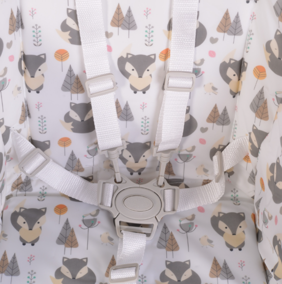 Благодаря легкому складыванию и раскладыванию стульчик можно везде носить с собой и обеспечить малышу комфорт во время еды. 5-точечный ремень безопасности обеспечит безопасность малыша. В кресле есть практичная корзина для аксессуаров, куда можно положить покупки, детские игрушки и все необходимые детские аксессуары. Изделие имеет накладку с ПВХ-покрытием для легкой очистки.