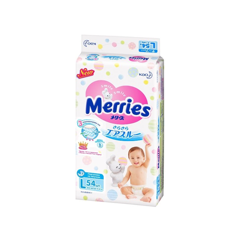 Подгузники Merries размер L (9-14 кг), 54 шт.