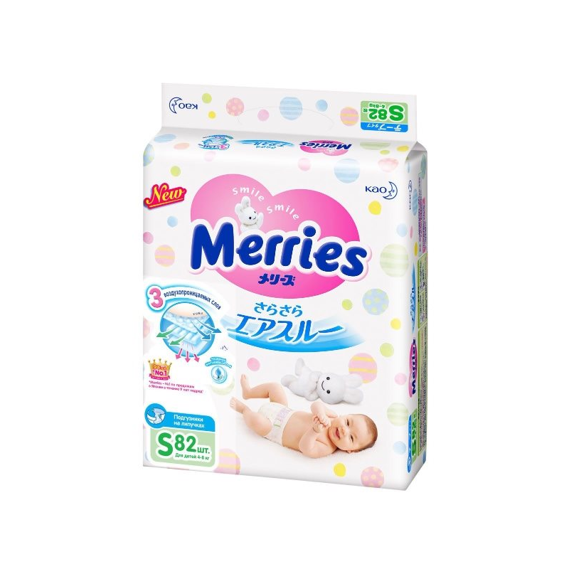 Тонкие «дышащие» подгузники «Merries» S 4-8 кг прекрасно защитят кожу малыша от опрелостей. Инновационная технология трех «дышащих» слоев отлично выводит прелый воздух из подгузника, что позволит попке малыша всегда оставаться сухой. Благодаря новой резинке на спинке, подгузник лучше прилегает к спинке, что снижает риск протекания.