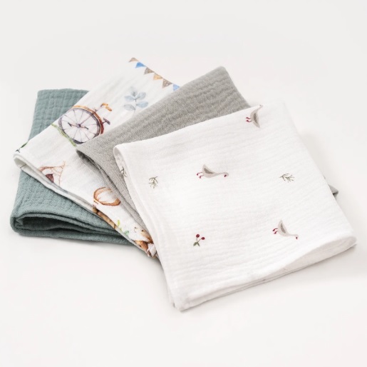 Салфетки, изготовленные из жатого муслина (100% эко хлопок), идеально подходят для деликатной заботы о новорожденном малыше. Они мягкие, нежные и при этом прочные, что делает их подходящими с первых дней жизни. Эти платочки хорошо впитывают влагу и быстро сохнут после стирки.
