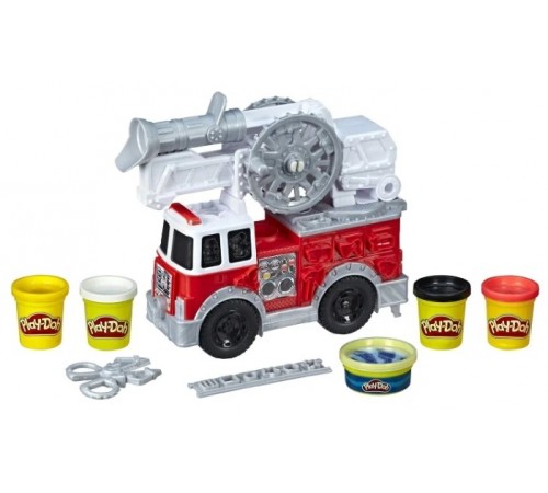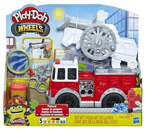 Этот удивительный набор разбудит воображение! Пожарная машинка с водяной пушкой уже готова к выезду на спасательную операцию. Просто поместите в нее массу для лепки, имитирующую воду, — и отправляйтесь в путь. Приехав на место пожара, поверните ручку и приступайте к тушению пожара. На боках машинки имеются формочки для создания огня, значка пожарного и пр. Кроме баночки с массой для лепки цвета воды в набор входят еще 4 баночки с массой разных цветов для создания множества вещей, совершенно необходимых начинающему пожарному. Набор развивает мелкую моторику, тактильные ощущения и творческие навыки. Массу можно резать ножницами Play-Doh (входят в комплект).