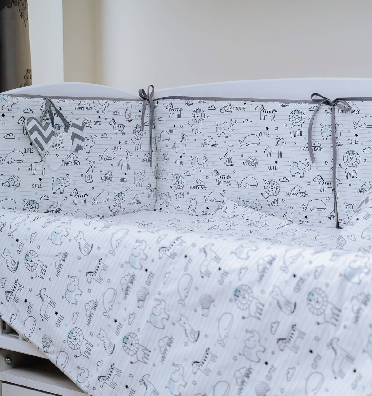 Insenineaza camera si patutul copilului tau cu un set de Lenjerie de patut 8 piese PernaMea HappyBaby.