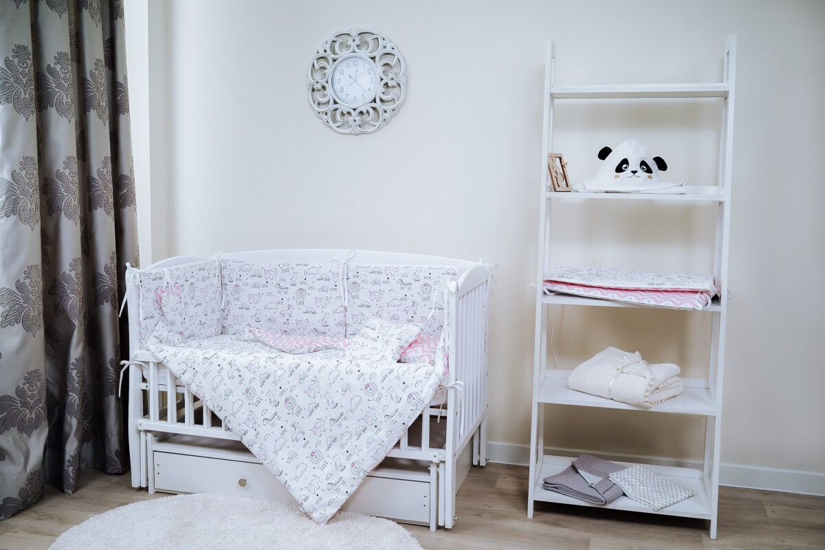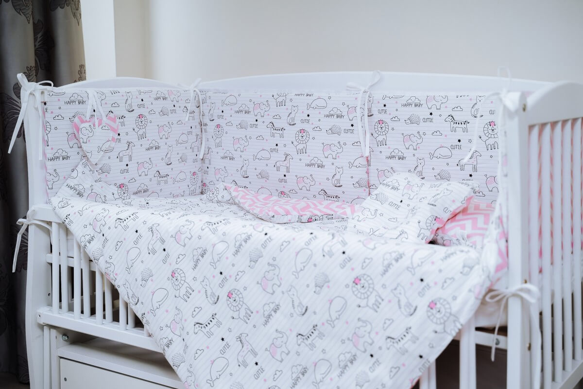 - Бортики по всему периметру кроватки (6 шт.) 60×35 см