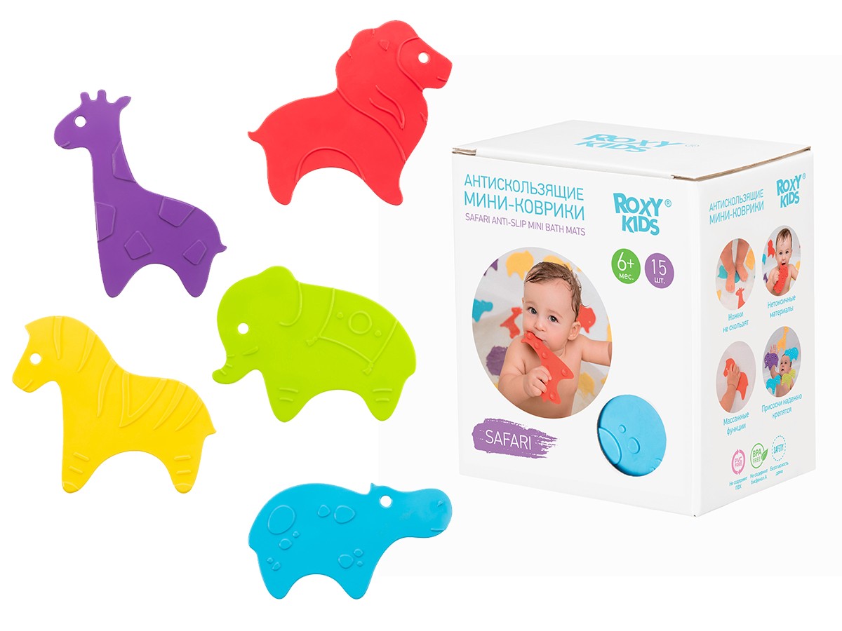 Мини коврики для ванной SAFARI от ROXY-KIDS произведены в России из современного и безопасного материала ТЭП.