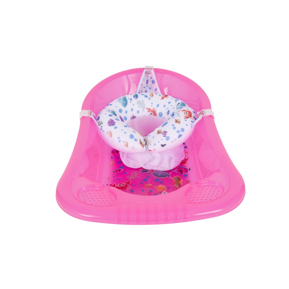 В первые месяцы можно использовать только матрасик (до 4 месяцев) или сетку с матрасиком вместе (до 7 месяцев), укрепив ее с помощью широких крючков к краям ванночки для удобной поддержки малыша во время купания. Когда ребенок подрастет — матрасик можно использовать для поддержки ребенка в ванночке в сидячем положении (до 2 лет).
