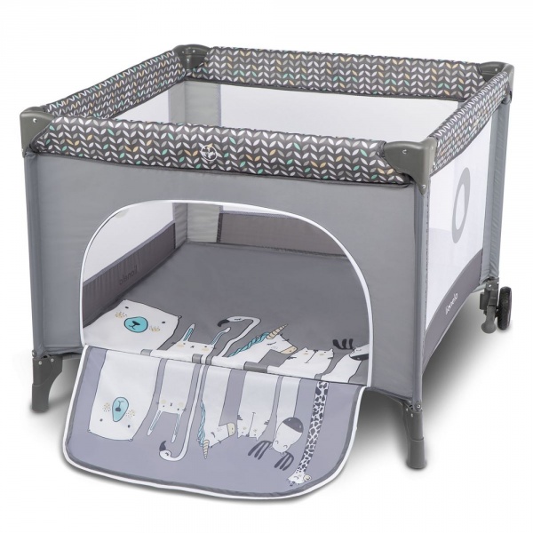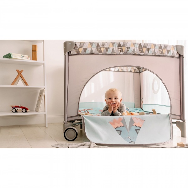 - Функциональность: быстрое складывание и раскладывание; боковой вход на молнии; прозрачная сетка; компактный размер после складывания; защита от случайного складывания; 2 колеса с тормозом для легкого передвижения; съемный матрас