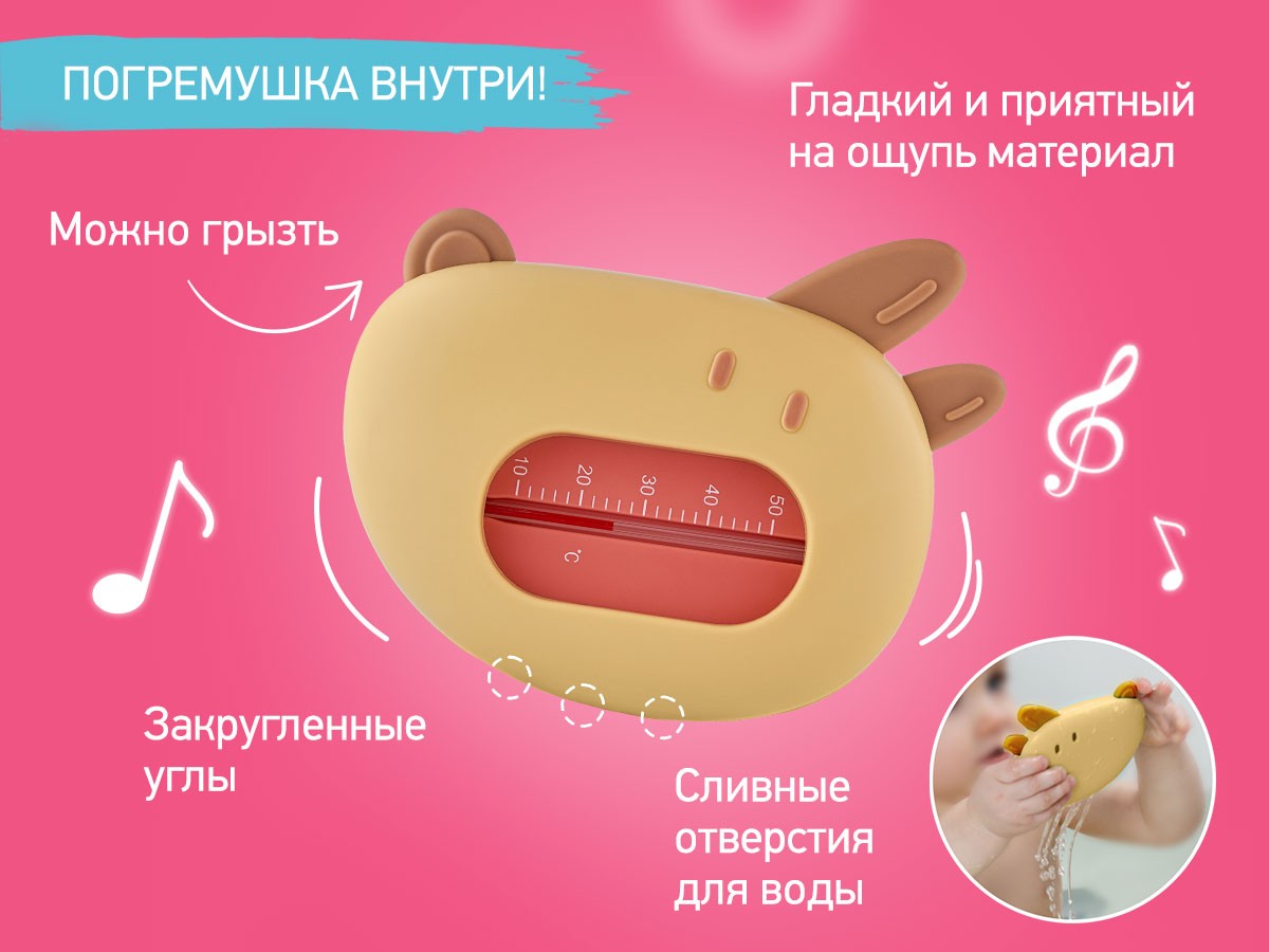 Дополнительно термометр оснащен мягкими элементами, которые можно грызть.