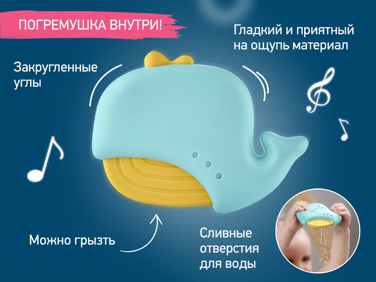Погремушка внутри радует малыша во время водных процедур и создает дополнительные звуковые эффекты, делая купание еще более увлекательным и интересным!